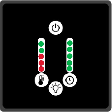 Temperatuur per 5 graden met maximaal 10 stappen van 70°C tot 110°, één LED 70°C, vijf LED's 110°C |